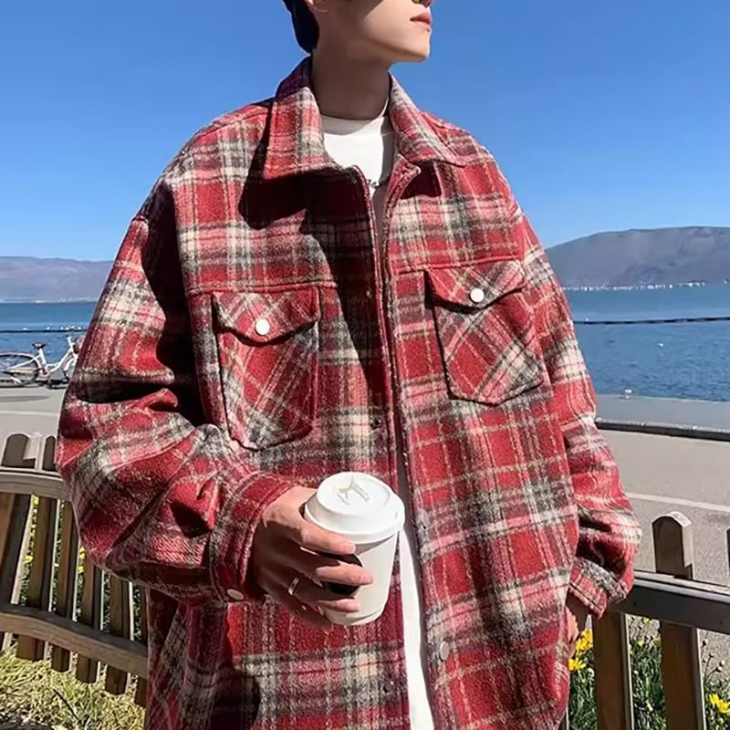 カジュアルジャケット チェック柄 長袖 厚手 3 カラー H00030