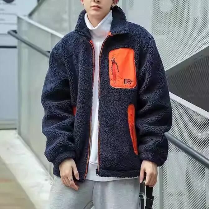 スタンドカラー ジップアップ ボア フリースジャケット パッチポケット付 4 カラー H00028