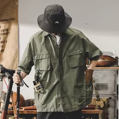 長袖&半袖 2WAY パッチポケット シャツ 3 カラー H00053