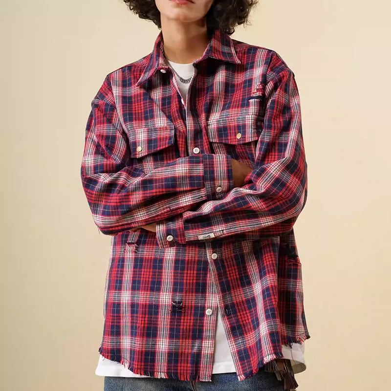 チェック柄 長袖 ネルシャツ パッチポケット付 2 カラー H00055