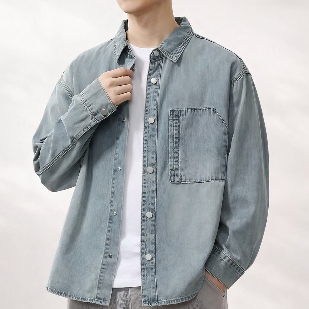 ハードウォッシュデニムシャツ パッチポケット付 H00042