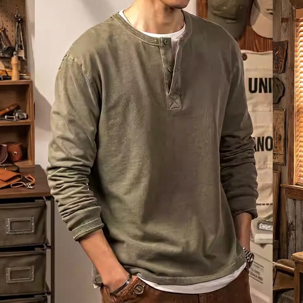 ヘンリーネック 長袖 無地 カットソー 4 カラー H00024