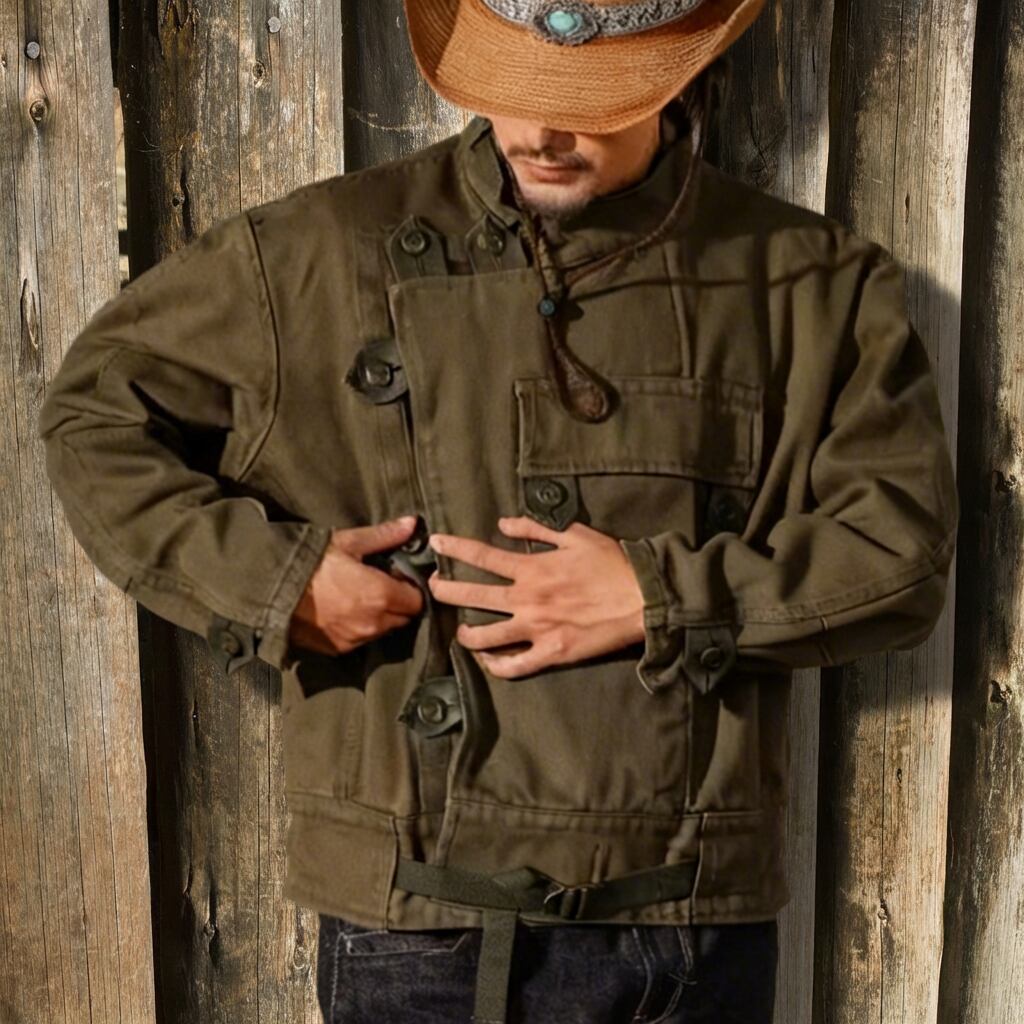 フロントボタンのデザインが特徴的で、カジュアルながらも洗練された印象を与えます。