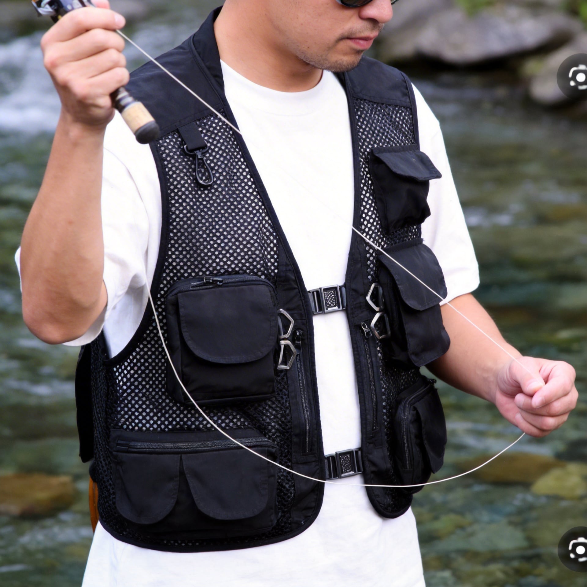 アウトドアシーンで活躍する、ミドル丈のメッシュベストです。