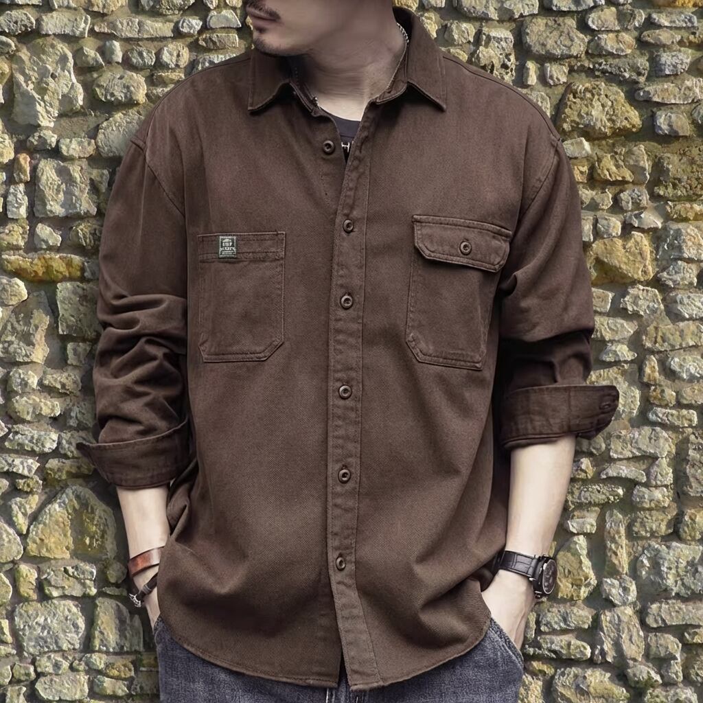 パッチポケット 長袖 オーバーサイズ シャツ 3 カラー H00107