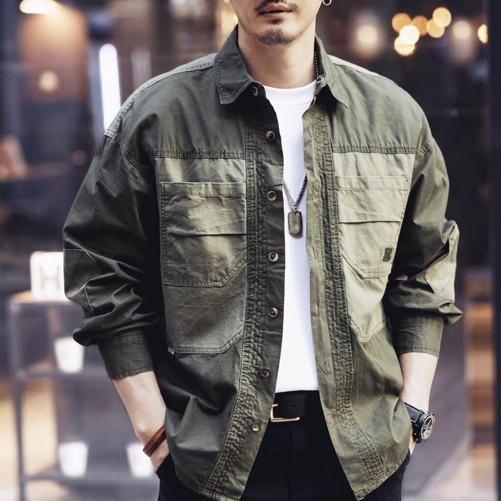 両胸のパッチポケットがアクセント。