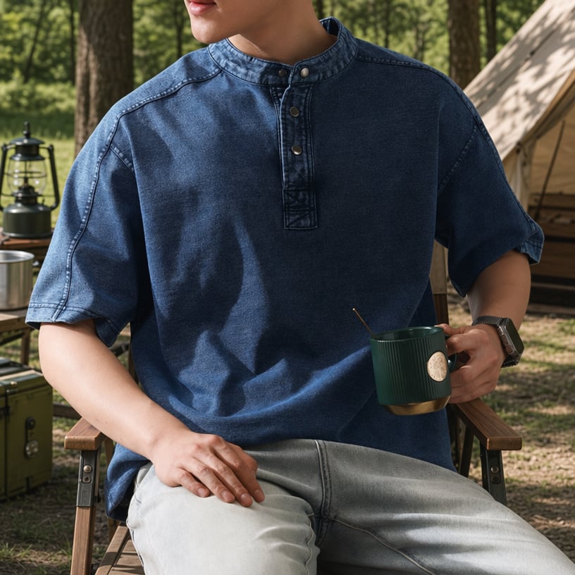 バンドカラー 半袖 ゆったり プルオーバー シャツ H00132